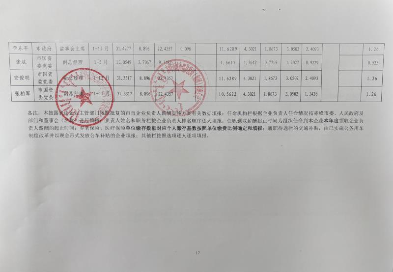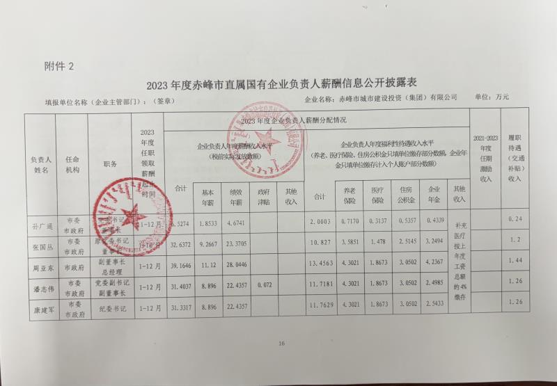 赤峰市城建集團2023年度工資總額清…