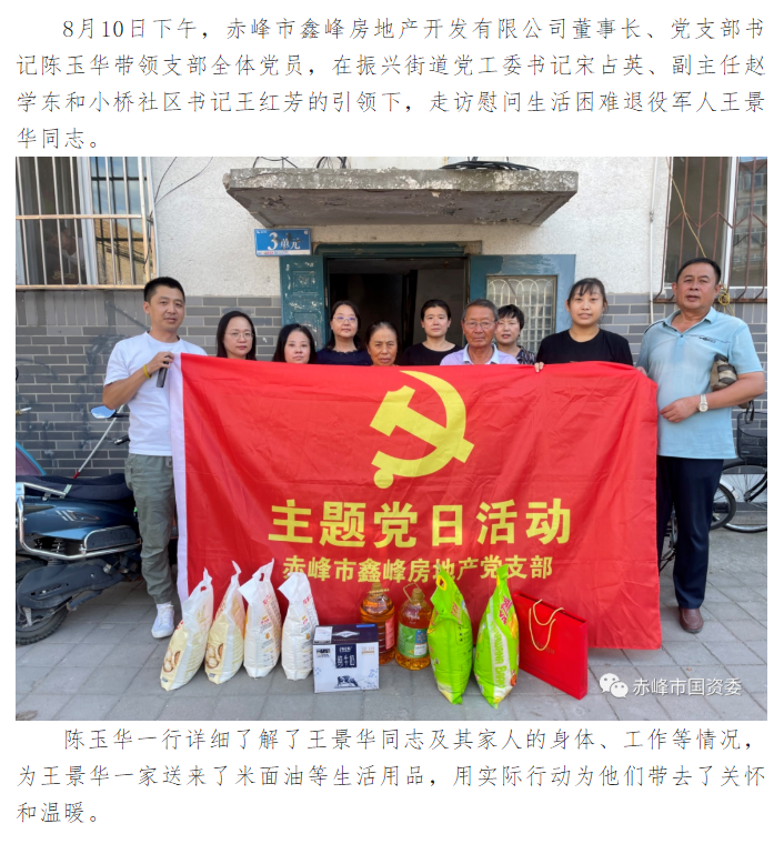 赤峰市鑫峰房地產(chǎn)黨支部開展擁軍優(yōu)屬活動慰問生活困難退役軍人