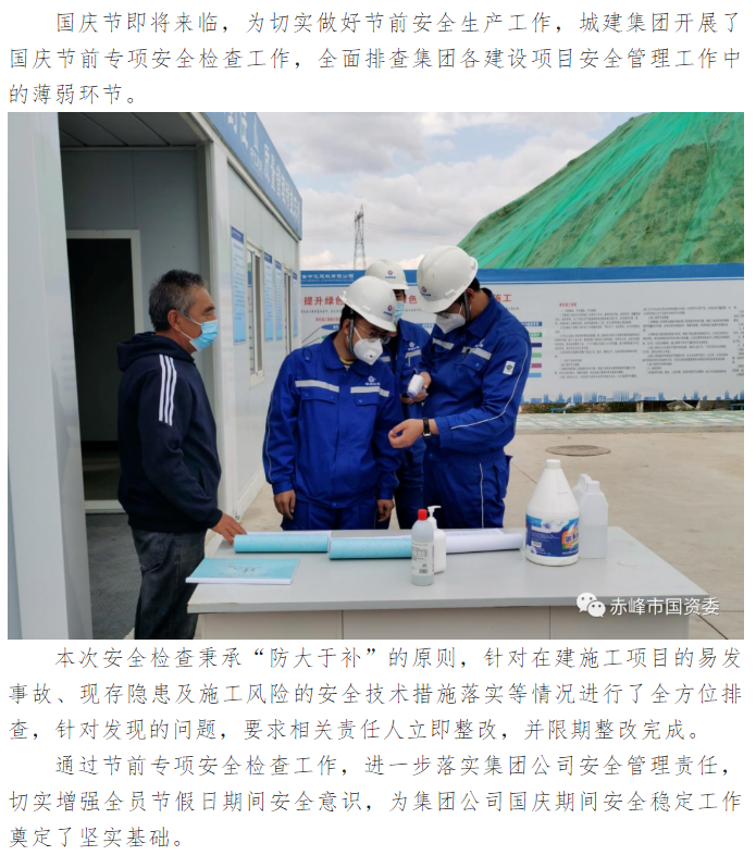 赤峰市城市建設投資(集團)有限公司開展國慶節(jié)前專項安全檢查工作